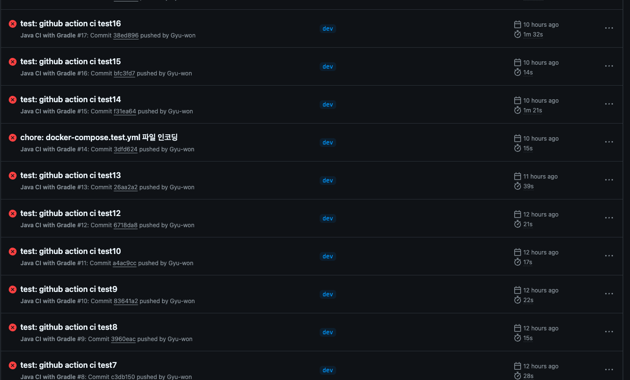 echo "${{ secrets.TEST_DOCKER_COMPOSE_YML }}" | base64 -d | sed 's/\r$//' > docker-compose.yml또한 database 실행을 기다리고, connection을 확인하는 작성하고, docker 프로세스 확인하는 로그 코드도 작성하여 문제 발생 시 바로 에러 부분을 확인할 수 있도록 하였습니다.