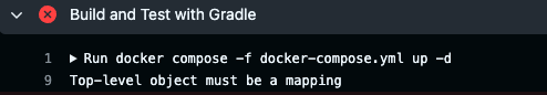 run: docker compose -f docker-compose.yml down세번째로 만난 오류는 'Top-level object must be a mapping' 오류입니다. (이것 때문에 고생 많이 했습니다)