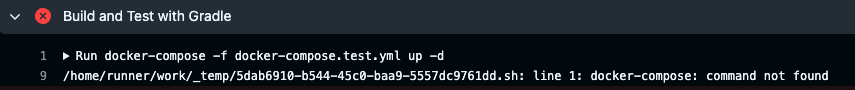 echo "${{ secrets.TEST_DOCKER_COMPOSE_YML }}" > docker-compose.yml두번째로 만난 오류는 docker-compose 명령어가 없다는 오류입니다.